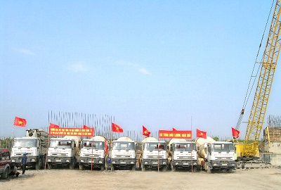 Xe chuyển trộn bê tông thi công tại CT XMHT2 – Kiên Giang